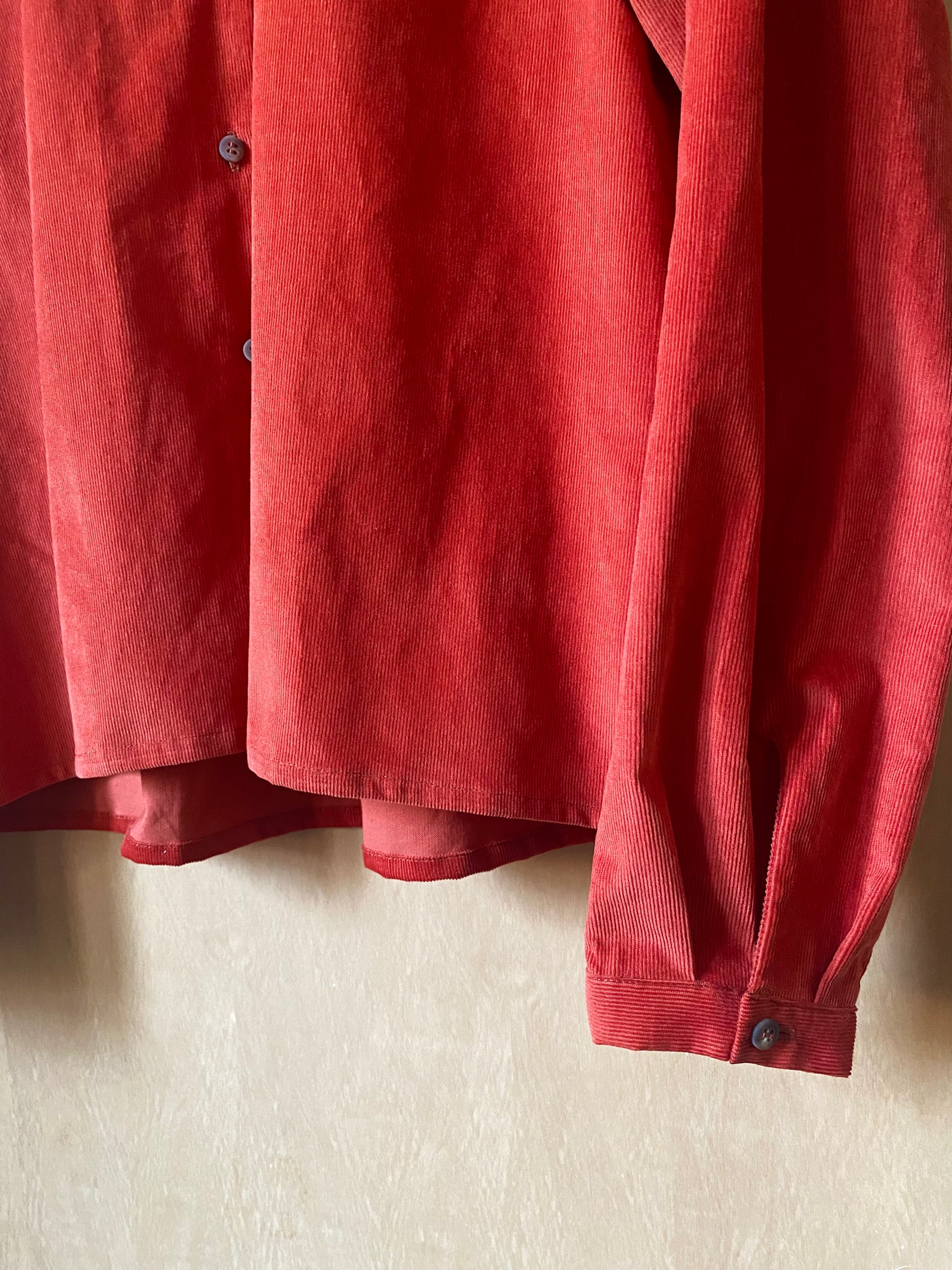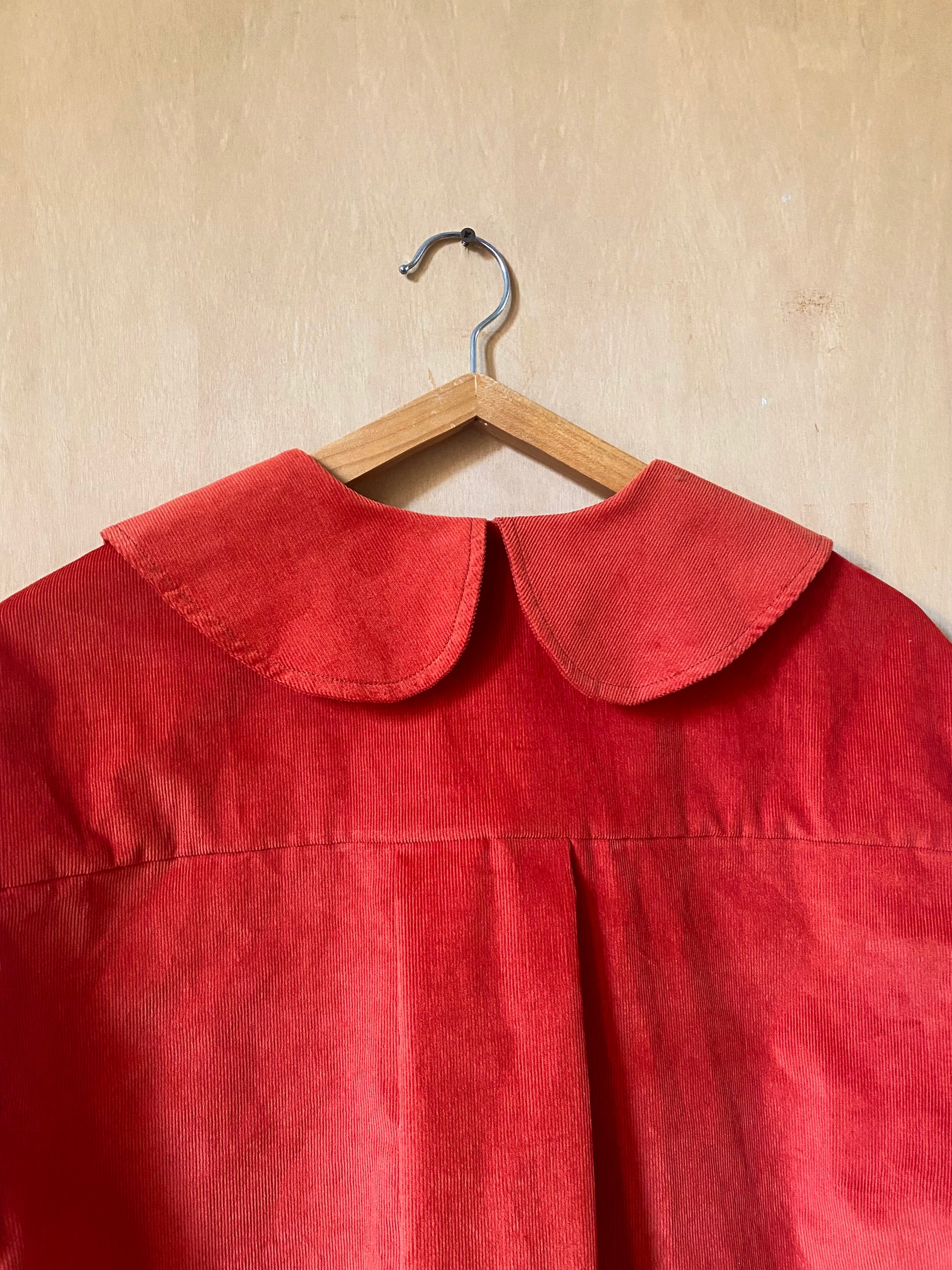 camicia in velluto di cotone millerighe, corta con colletto arrotondato piatto.